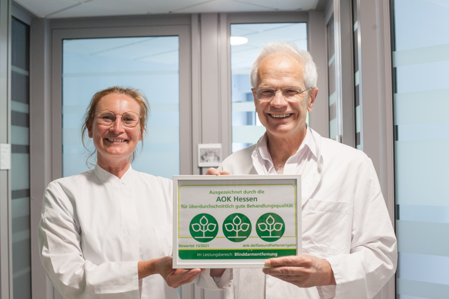Die Auszeichnung wird auf Grundlage des jährlichen Qualitätsberichts und unabhängigen Bewertungen vergeben, die im Rahmen des AOK-Krankenhausnavigators erhoben werden. „Wir sind stolz auf diese Anerkennung.“, freut sich PD Dr. Christian Kuntz, Ärztlicher Direktor und Chefarzt der Allgemein- und Viszeralchirurgie. „Dass wir in der Region Mittelhessen so gut abschneiden, stärkt das Vertrauen der Patienten in unser Haus. Für unser Team ist die Auszeichnung, die wir uns in den letzten Jahren erarbeitet haben, Ansporn auch weiterhin überdurchschnittlichen Einsatz für unsere Patienten zu leisten.“