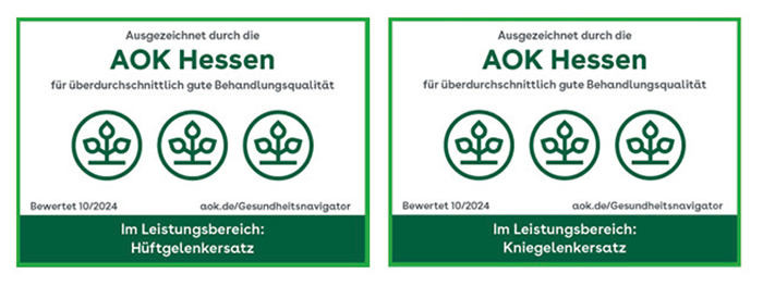 Das Kreiskrankenhaus Weilburg hat von der AOK Hessen eine besondere Auszeichnung für die hohe Behandlungsqualität im Bereich des Hüftgelenkersatzes und Kniegelenkersatzes erhalten. Diese Ehrung würdigt die überdurchschnittliche Qualität der medizinischen Versorgung und unterstreicht das Engagement des Hauses für eine exzellente Patientenbetreuung und ein hohes Maß an Sicherheit und Professionalität in der Behandlung von Gelenkersatz-Patienten.