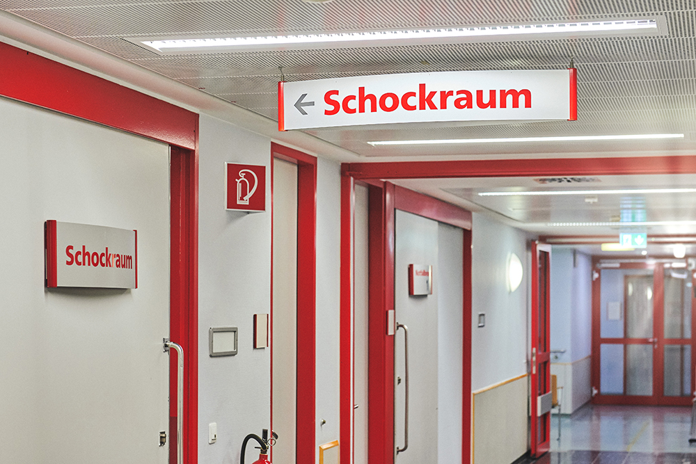 Wenn es heißt „Achtung Schockraumalarm“ ist das Traumazentrum gefordert. Der Schockraum ist der Mittelpunkt jeder Notaufnahme. Hier befindet sich die Schnittstelle zwischen Krankenwagen, Rettungshubschrauber und Krankenhaus. Ausgestattet ist der Schockraum mit modernsten Apparaten, Labortechnik, Beatmungsmaschinen sowie Röntgen- und Infusionsgeräten. An diesem Ort setzt sich das Weilburger Team des Traumazentrums, bestehend aus Ärzten und Pflegefachkräften, nach Verkehrs- und Arbeitsunfällen, nach Stürzen aus großer Höhe oder Verbrennungen für die optimale Erstversorgung der Patienten ein.